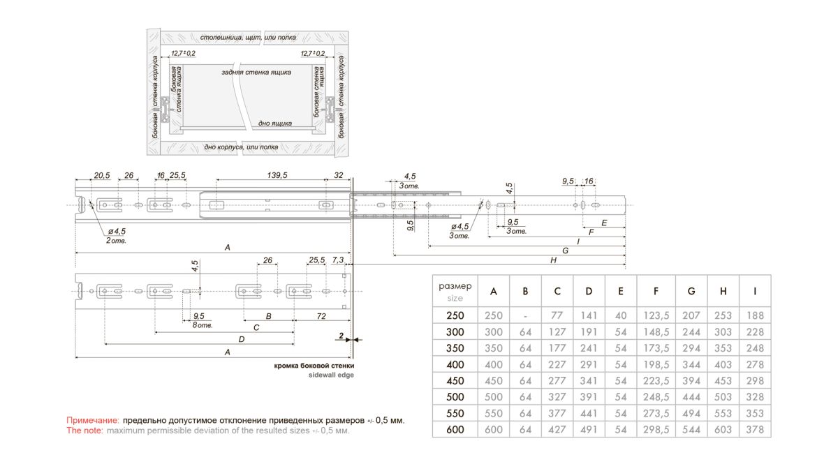 DB4501 — шариковые направляющие полного выдвижения без амортизации, выполненные по европейскому стандарту. Обладают современными характеристиками и обеспечивают стабильное выдвижение мебельных ящиков и плавный, равномерный ход. Модель надежна и долговечна – она обладает оптимальной грузоподъемностью до 20 кг (зависит от монтажной длины) и гарантирует бесперебойную работу механизма на протяжении 30 000 циклов открывания/закрывания.