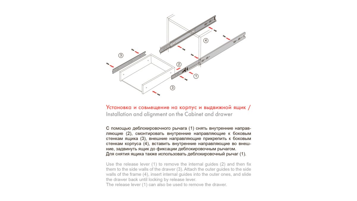 DB4501 — шариковые направляющие полного выдвижения без амортизации, выполненные по европейскому стандарту. Обладают современными характеристиками и обеспечивают стабильное выдвижение мебельных ящиков и плавный, равномерный ход. Модель надежна и долговечна – она обладает оптимальной грузоподъемностью до 20 кг (зависит от монтажной длины) и гарантирует бесперебойную работу механизма на протяжении 30 000 циклов открывания/закрывания.
