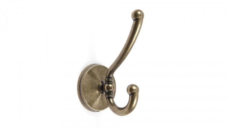 K218AB.9 Двухрожковый крючок LAURA нагр. до 15кг Старинная латунь