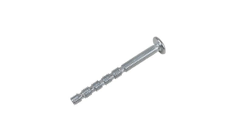 MT02/08/M4*45Zn/0 – сегментный винт с резьбой M4 для крепления мебельных ручек на фасады (МДФ/ДСП, пластика или стекла) толщиной от 10 до 40 мм. Универсальность применения винта обусловлена наличием 5-ти сегментов без резьбы в диапазоне от 20 до 45 мм с шагом 5 мм, что позволяет изменить длину винта, исходя из толщины фасада, не повредив саму резьбу. Для этого необходимо удалить нужное число сегментов механическим способом. Винт представлен в длине 45 мм, материал – сталь.