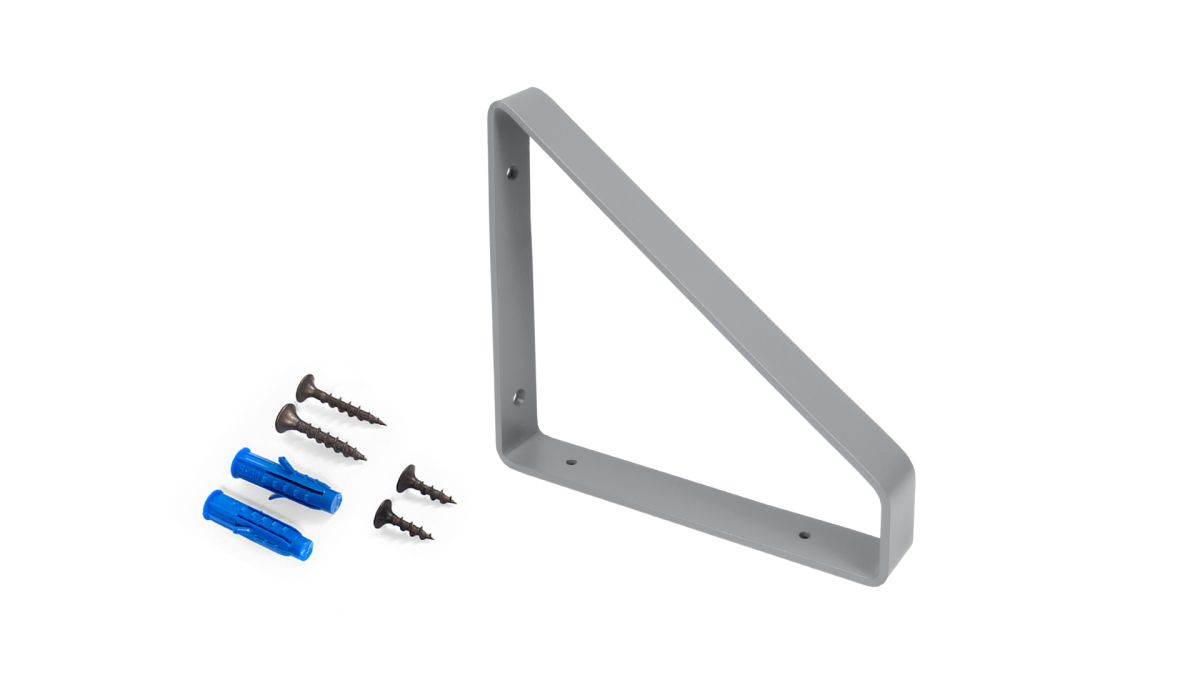 В комплект входит: полкодержатель (1 шт.), саморезы 3,5 х 30 (2 шт.), дюбели для саморезов 3,5 х 30 (2 шт.), саморезы 3,5 х 16 (2 шт.).