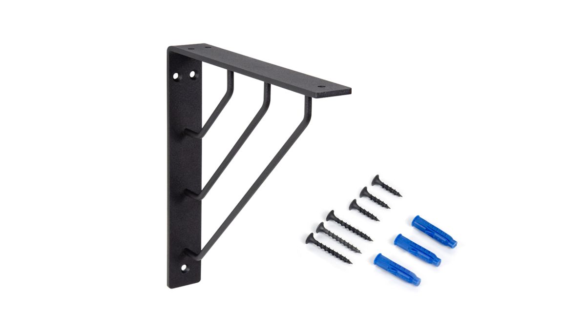 В комплект входит: полкодержатель (1 шт.), саморезы 3,5 х 30 (3 шт.), дюбели для саморезов 3,5 х 30 (3 шт.), саморезы 3,5 х 16 (3 шт.).