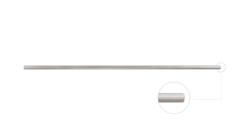 LINE PR003 — пруток с элегантным продольным рифлением для создания кастомных ручек CUSTOMIZE. Комбинируя его с держателями той же серии, можно собрать множество вариантов авторских моделей под свой мебельный проект.