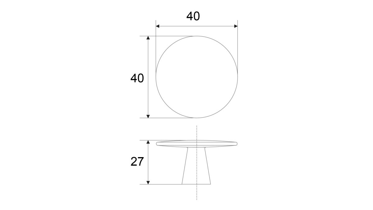 Ручка-кнопка с круглой шляпкой диаметром 40 мм и расширяющимся книзу основанием обладает эргономичной формой.