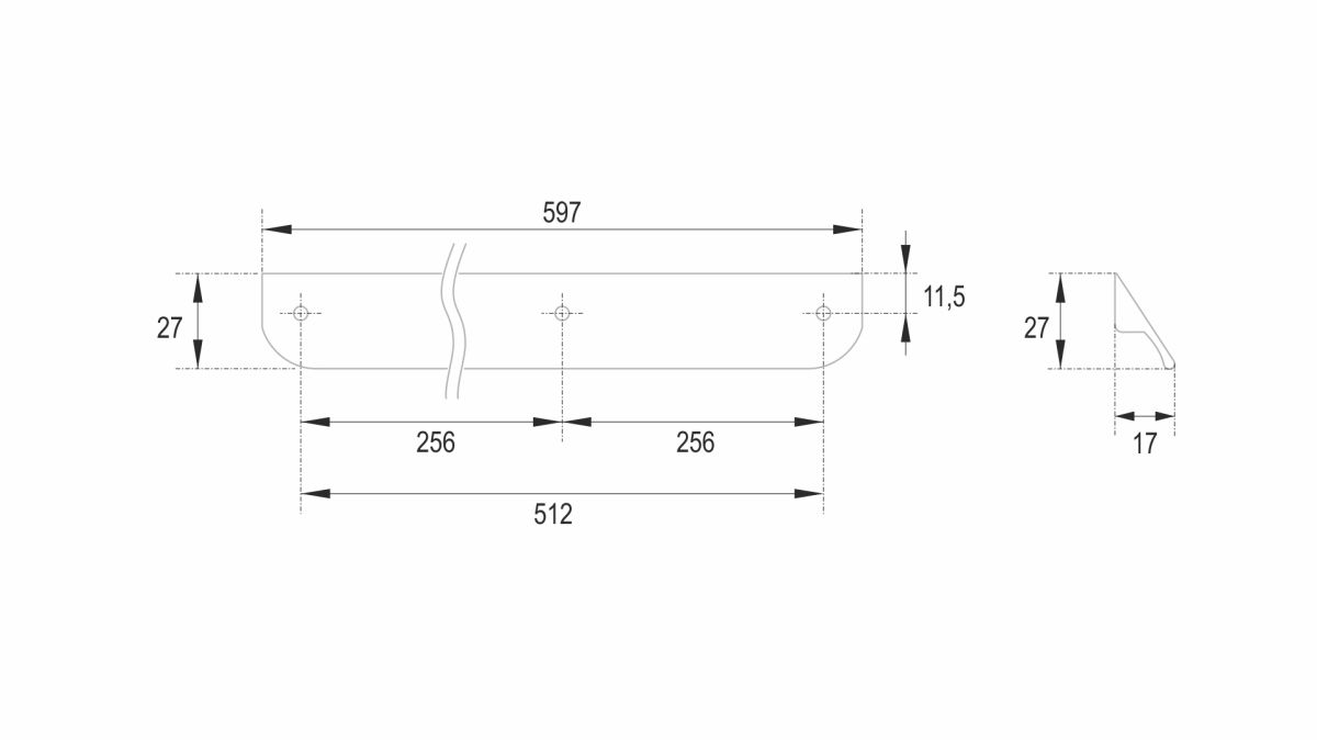 TICK RS156 — лаконичная ручка-скоба, которая выглядит как торцевая. Предназначена для установки на фасады толщиной от 16 мм.