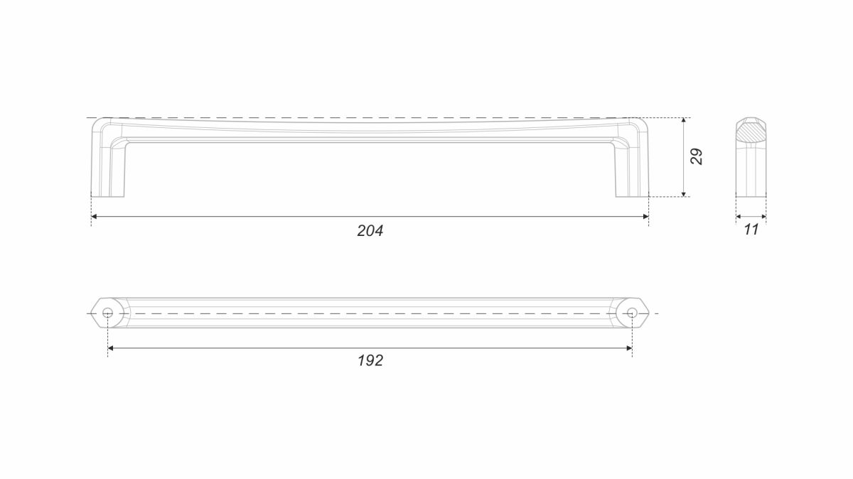 ORION RS332 — мебельная ручка-скоба из цинк-алюминия имеет гладкие и чёткие линии по всему периметру.