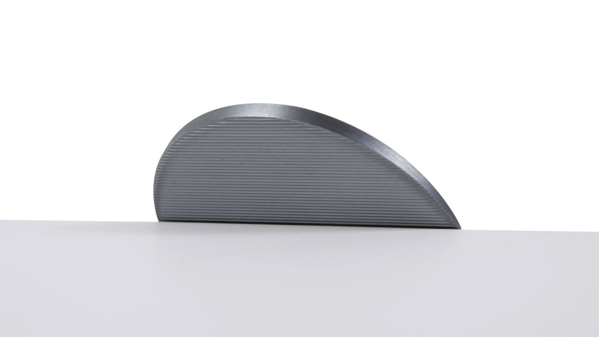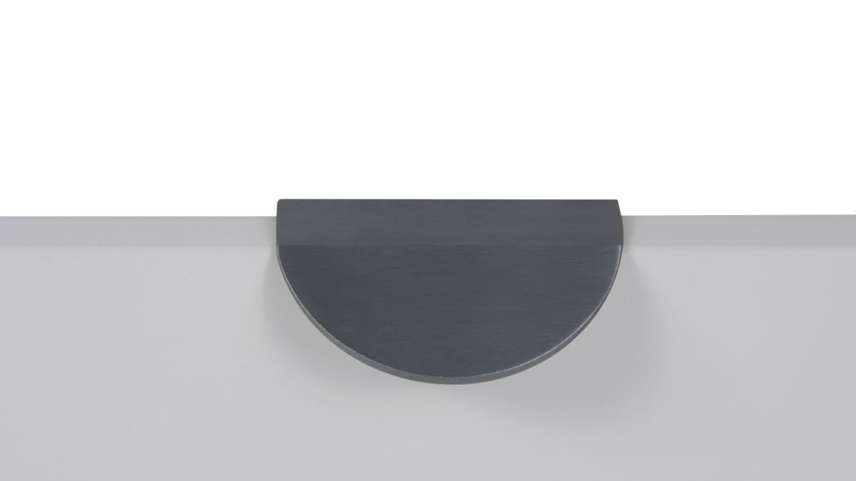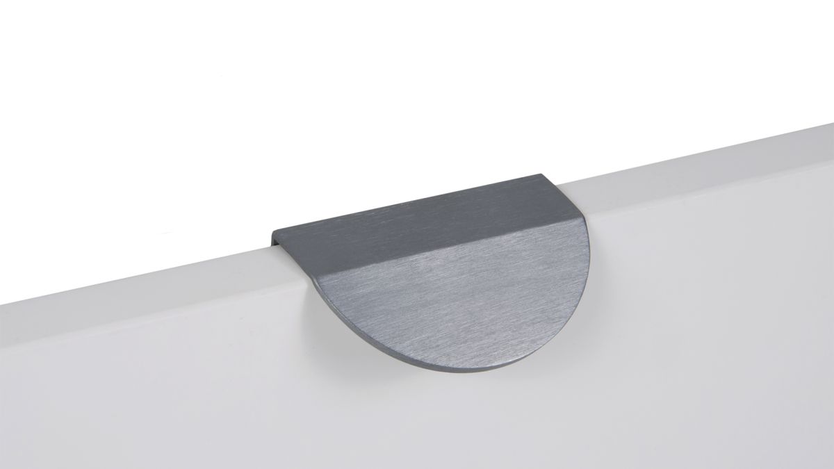 VIVA RT012 — торцевая ручка из алюминия, с геометричным выступом в форме полукруга. Для удобства захвата на ручках увеличен отступ язычка, а на его внутренней стороне предусмотрено рифление. Устанавливается наложением, подходит для фасадов толщиной до 18 мм.