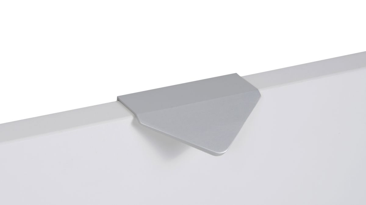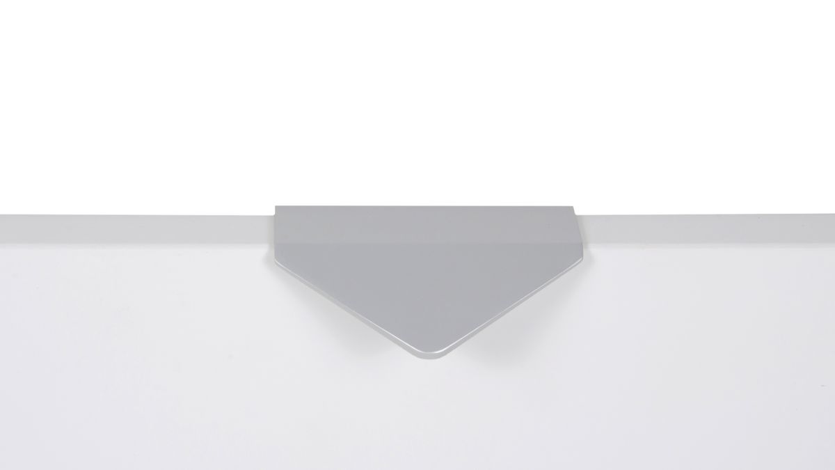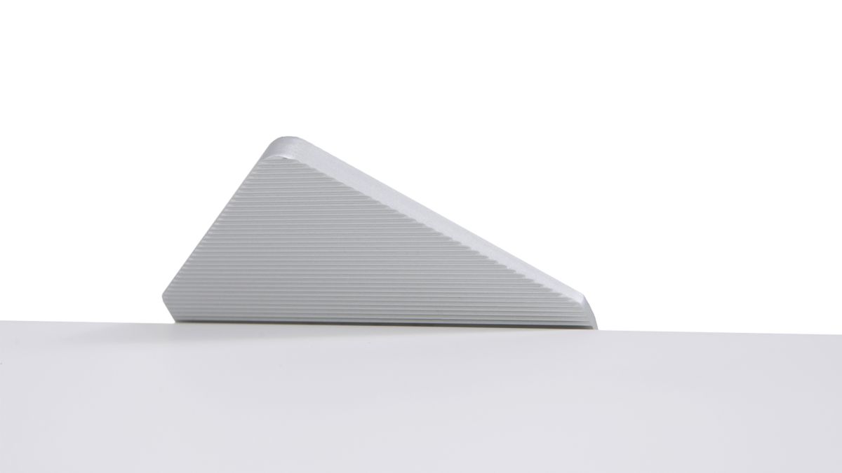 ICON RT014 — торцевая ручка из алюминия, с геометричным выступом в форме треугольника. Для удобства захвата на ручках увеличен отступ язычка, а на его внутренней стороне предусмотрено рифление. Устанавливается наложением, подходит для фасадов толщиной до 18 мм.