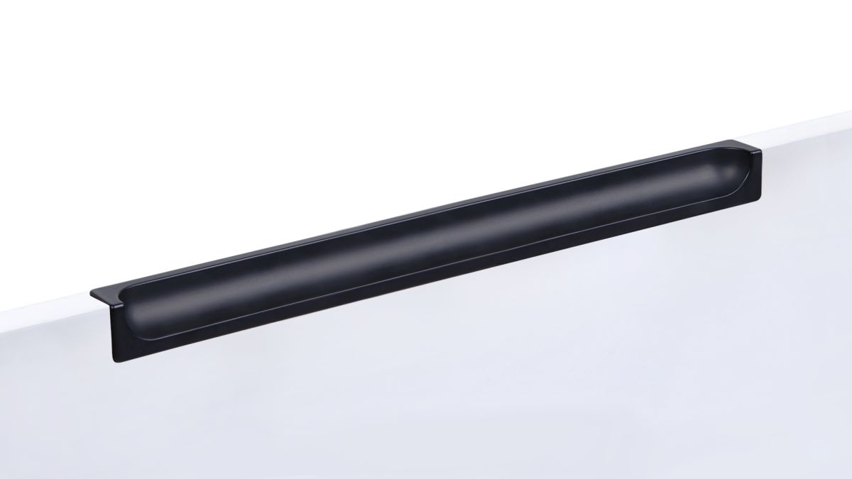 EVA RT020 — торцевая мебельная ручка из цинк-алюминия для установки на фасады толщиной от 16 мм врезным способом.
