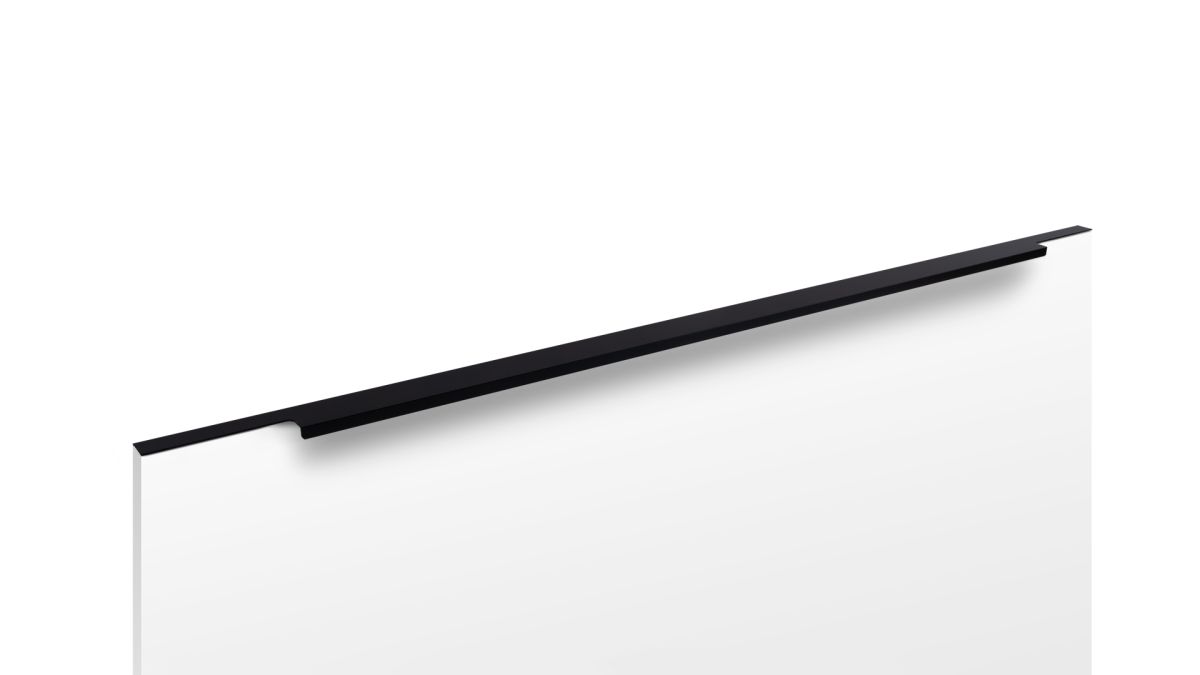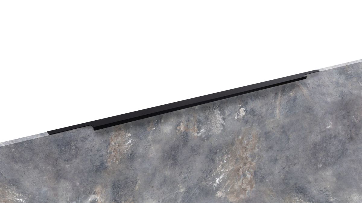 Ручка имеет богатую палитру цветовых решений и разнообразие длин. В зависимости от длины, модель допускает размещение двумя способами — «в размер» фасада и по центру широких фасадов (как большой «язычок»).