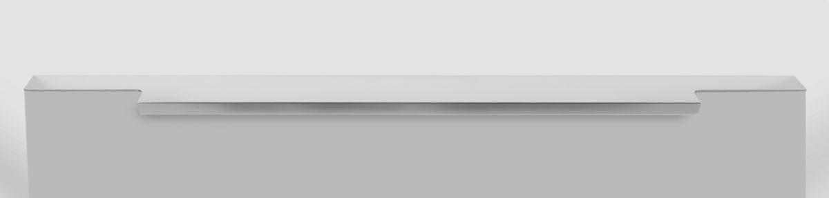 Ручка имеет богатую палитру цветовых решений и разнообразие длин. В зависимости от длины, модель допускает размещение двумя способами — «в размер» фасада и по центру широких фасадов (как большой «язычок»).