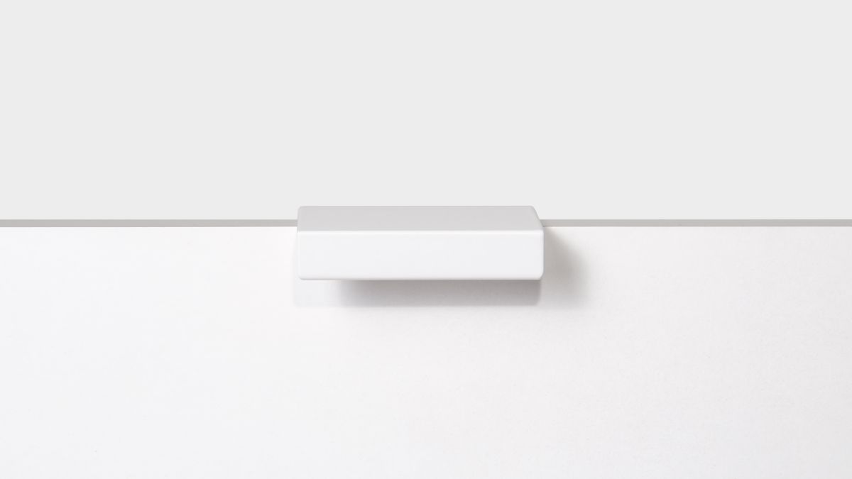 Ручка имеет богатую палитру цветовых решений и разнообразие длин. В зависимости от длины, модель допускает размещение двумя способами — «в размер» фасада и по центру широких фасадов (как большой «язычок»).