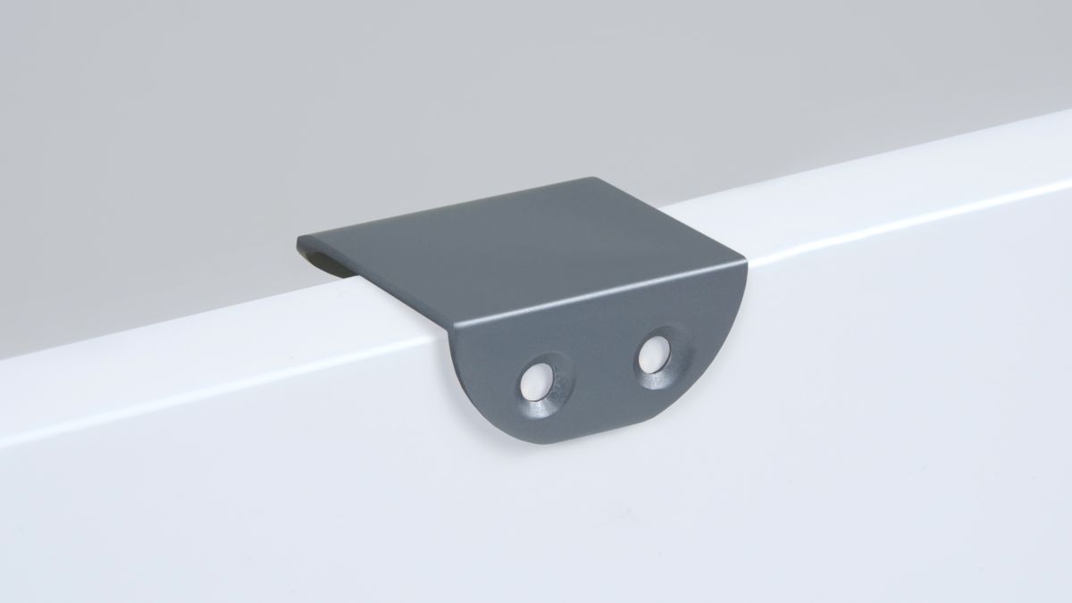 Модель крепится на фасад наложением и фиксируется при помощи саморезов. Саморезы не входят в комплект и приобретаются отдельно. Размер саморезов необходимо подобрать самостоятельно, исходя из толщины фасада, на который будет устанавливаться ручка.