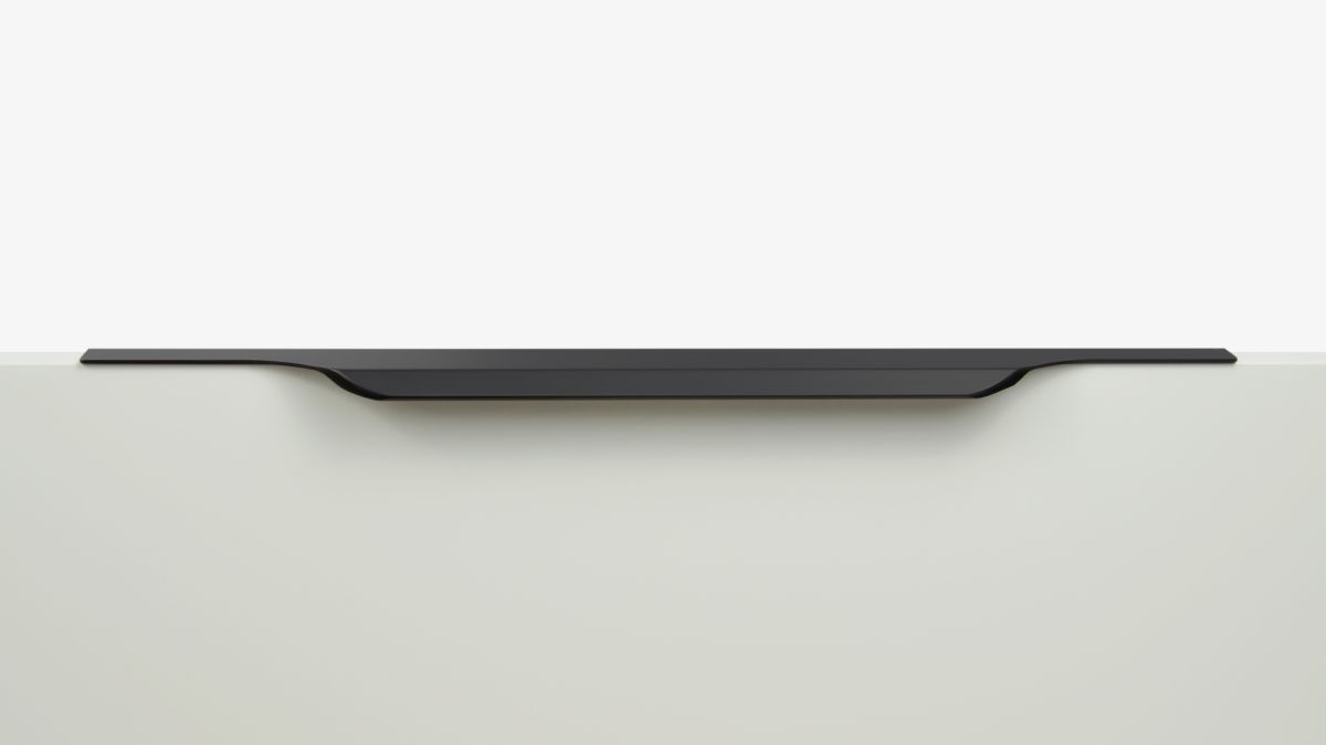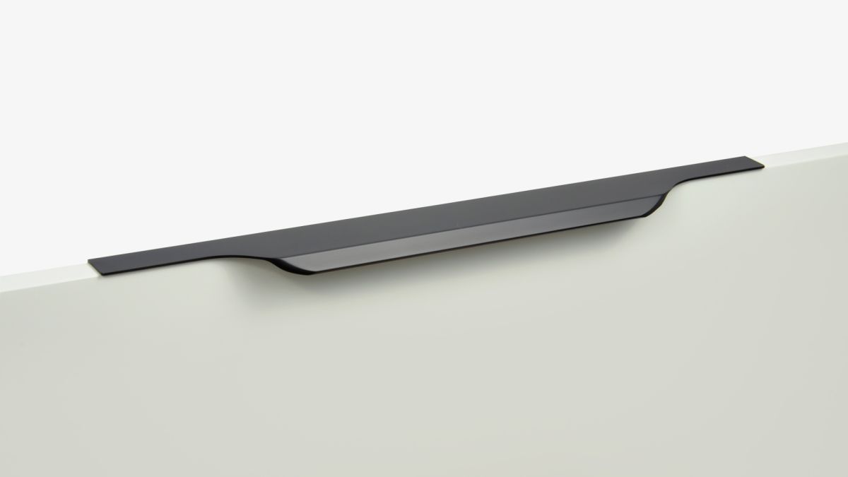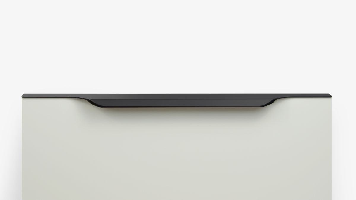 TERA подойдёт как для узких бутылочниц и корзин-карго, так и ящиков формата макси. Торцевую ручку, независимо от размера, можно устанавливать не только чётко в размер фасада, но и как широкий язычок. Ручки в виде язычков прекрасно выполняют свою функциональную и эстетическую роль на более широких фасадах.