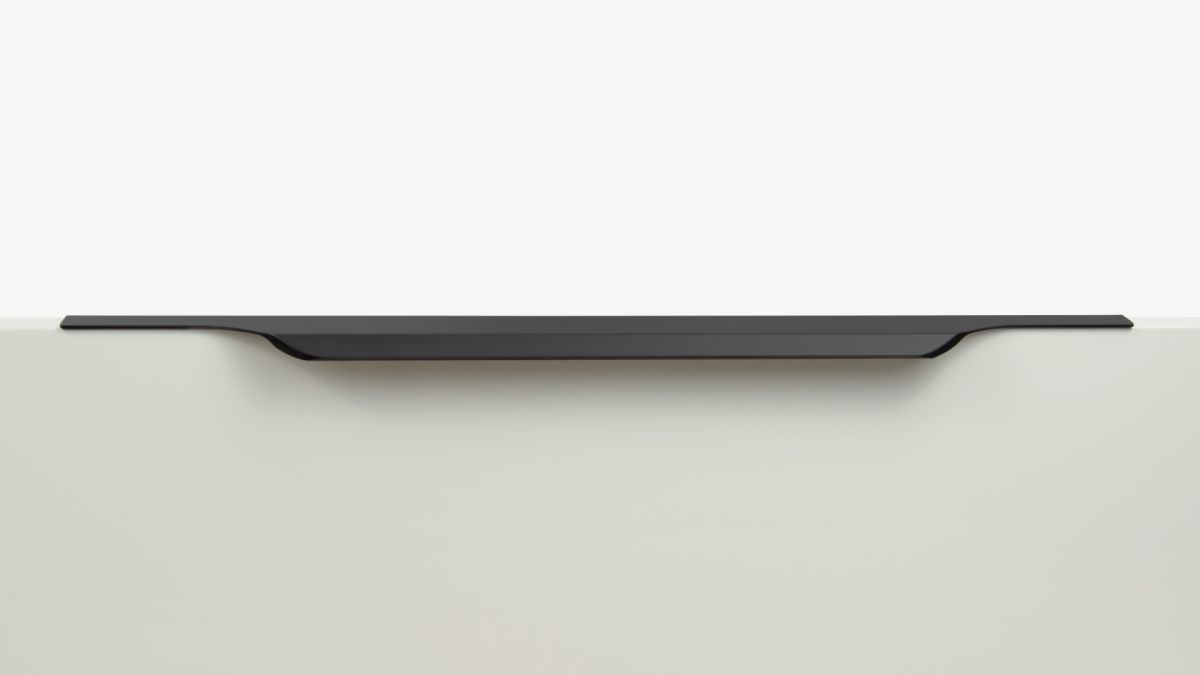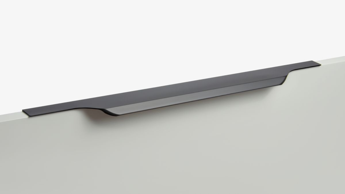 TERA подойдёт как для узких бутылочниц и корзин-карго, так и ящиков формата макси. Торцевую ручку, независимо от размера, можно устанавливать не только чётко в размер фасада, но и как широкий язычок. Ручки в виде язычков прекрасно выполняют свою функциональную и эстетическую роль на более широких фасадах.