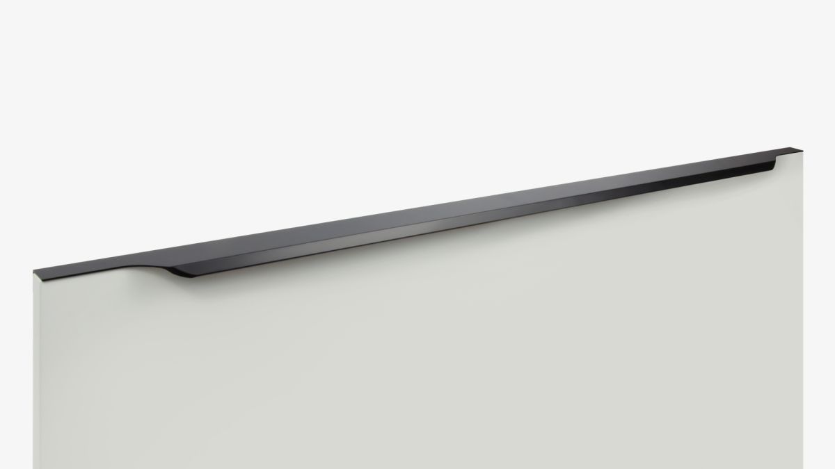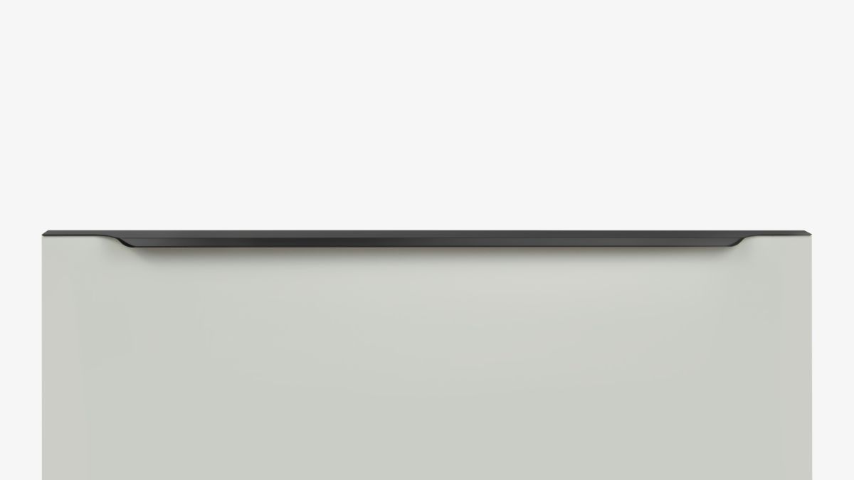 TERA подойдёт как для узких бутылочниц и корзин-карго, так и ящиков формата макси. Торцевую ручку, независимо от размера, можно устанавливать не только чётко в размер фасада, но и как широкий язычок. Ручки в виде язычков прекрасно выполняют свою функциональную и эстетическую роль на более широких фасадах.