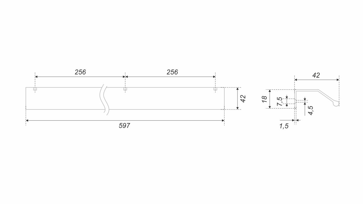 METRICA RT112 — торцевая ручка из алюминия, с геометричным выступом и рифлением в зоне захвата для эргономичного использования. Устанавливается наложением, подходит для фасадов толщиной от 16 мм до 20 мм.