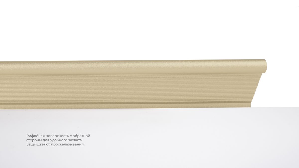 METRICA RT112 — торцевая ручка из алюминия, с геометричным выступом и рифлением в зоне захвата для эргономичного использования. Устанавливается наложением, подходит для фасадов толщиной от 16 мм до 20 мм.