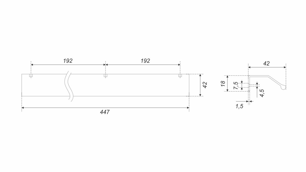 Модель крепится на фасад наложением и фиксируется при помощи саморезов. Саморезы не входят в комплект и приобретаются отдельно. Размер саморезов необходимо подобрать самостоятельно, исходя из толщины фасада, на который будет устанавливаться ручка.