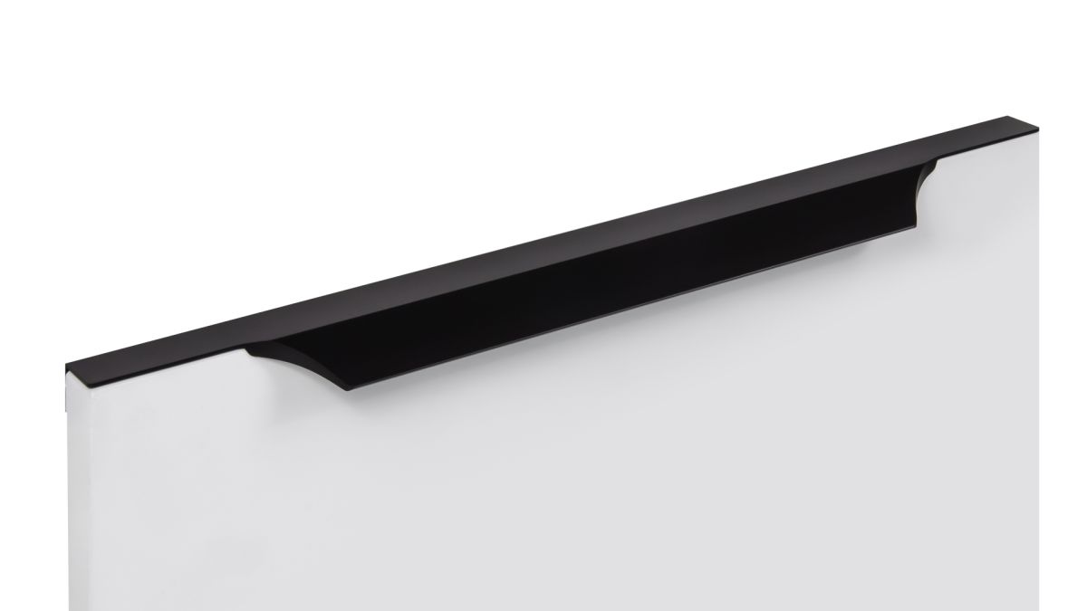 WING RT114 — торцевая ручка с изгибом из алюминия, устанавливается наложением на фасады толщиной 18,8 мм (в цветах BL,GR,SC,SG) и 18,5 мм (в цвете W).