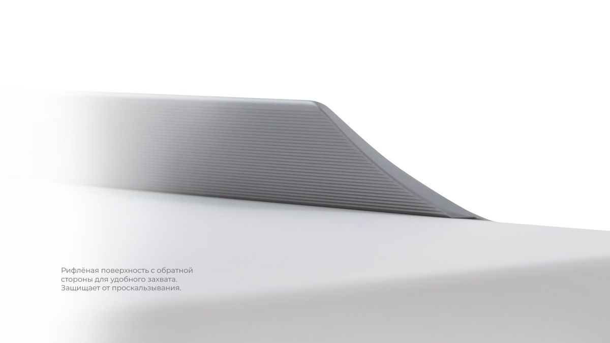 Модель выполнена в стильном дизайне и имеет рифлёное покрытие в зоне захвата для эргономичного использования ручки без соскальзывания. За счёт обтекаемой формы RT114 идеально ложится в ладонь. Дополнительный выступ в конструкции модели создаст эффект погружения фасада, аккуратно закрывая его края.
