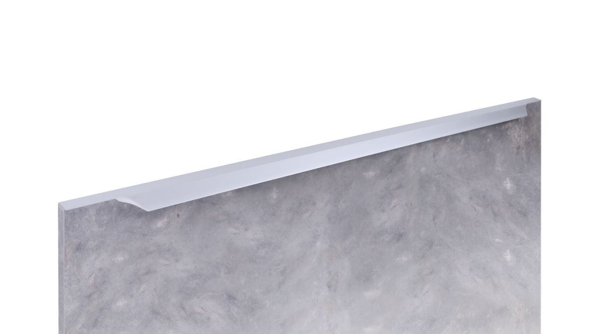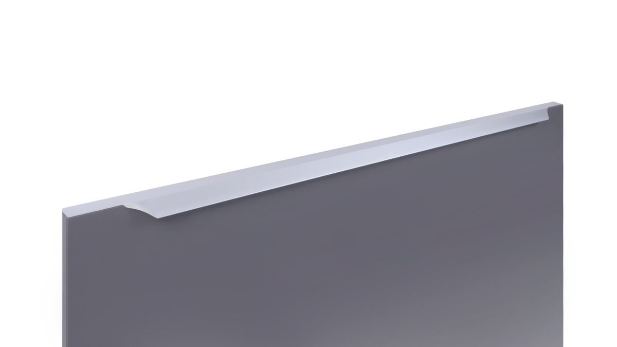 WING RT114 — торцевая ручка с изгибом из алюминия, устанавливается наложением на фасады толщиной 18,8 мм (в цветах BL,GR,SC,SG) и 18,5 мм (в цвете W).