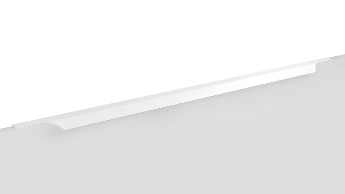 WING RT114 — торцевая ручка с изгибом из алюминия, устанавливается наложением на фасады толщиной 18,8 мм (в цветах BL,GR,SC,SG) и 18,5 мм (в цвете W).