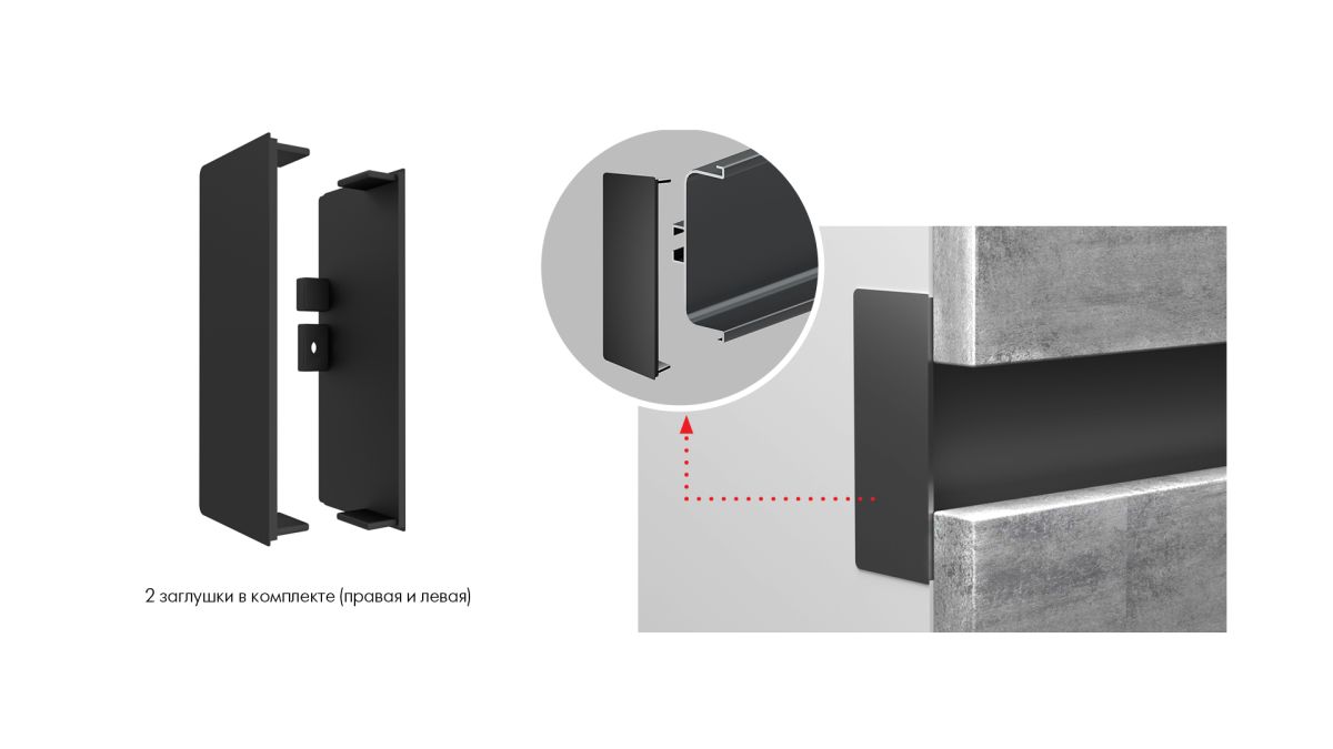 В комплект входит: левая и правая заглушки, 2 винта для крепления заглушки к профилю, ключ-шестигранник для фиксации винтов.