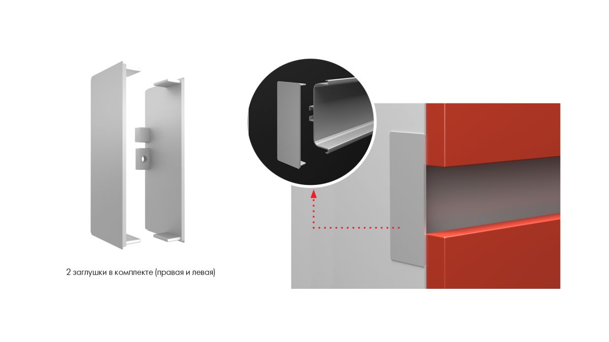 В комплект входит: левая и правая заглушки, 2 винта для крепления заглушки к профилю, ключ-шестигранник для фиксации винтов.