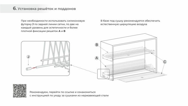STUDIO 16 SU08 — сушка для посуды в верхнюю базу из прутковой нержавеющей стали для мебели из плит толщиной 16 мм. Модель монтируется в короб без малейших зазоров. Подходит для коробов без дна (рекомендовано) и "глухих".