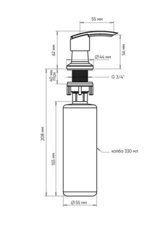 Дозатор предназначен для установки на кухонную мойку из искусственного камня ULGRAN или столешницу толщиной не более 35 мм. Дозатор ULGRAN позволяет с помощью лёгкого нажатия получать необходимое количество жидкости для мытья посуды, при этом важно, что дозатор заполняется моющим средством сверху.