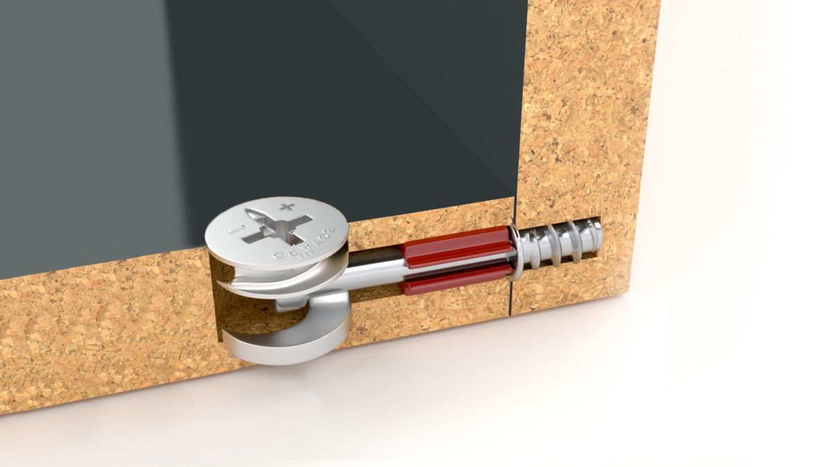 Красный поворотный фиксатор позволит удобно удерживать дюбель при монтаже в пласть. Наличие зауженного стартового витка у дюбеля гарантирует плавное закручивание стяжки без повреждения поверхности.