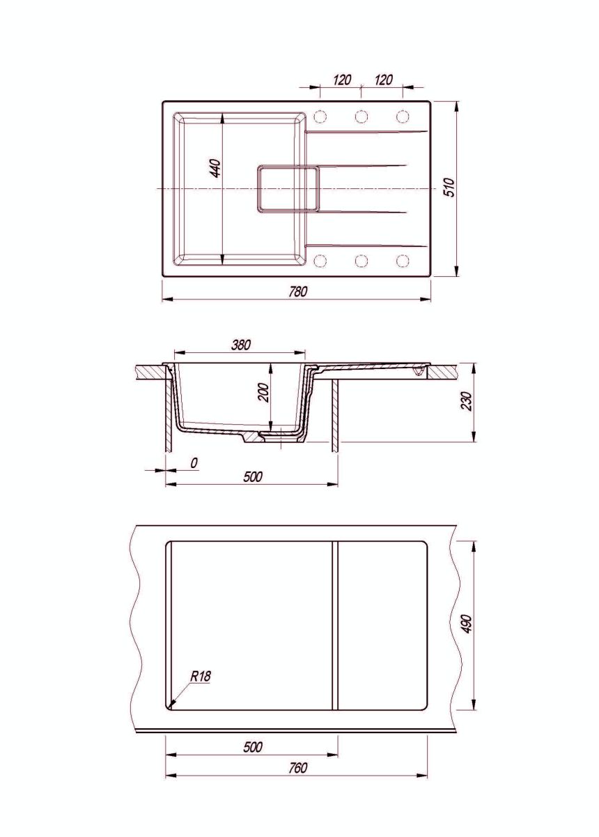 Материал однороден по всей глубине мойки без верхнего покрытия.