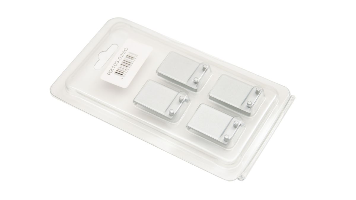 RZ103 выполнены из цинк-алюминиевого сплава в цвет профиля, упакованы по 4 штуки (две правые, две левые) в специальный пластиковый контейнер.